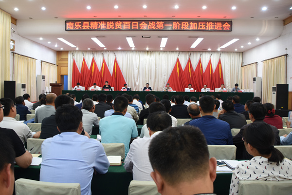 会议由副县长杨瑞峰主持,县委副书记刘翠安排部署了10月份脱贫攻坚工作;县领导董险峰宣读了《关于成立南乐县脱贫攻坚重大专项工作指挥部的通知》;县委常委、组织部长李继峰宣读了《南乐县2018年18个贫困村精准退出奖惩机制实施办法》;县委常委、县纪委书记、县监察委主任郭爱青宣读了《南乐县精准脱贫百日会战乡镇工作问责办法(试行)》;西邵乡赵任村、梁村乡邵庄村、杨村乡前吉楼村3个预脱贫村党支部书记做了表态发言;县长刘冰做了强调。